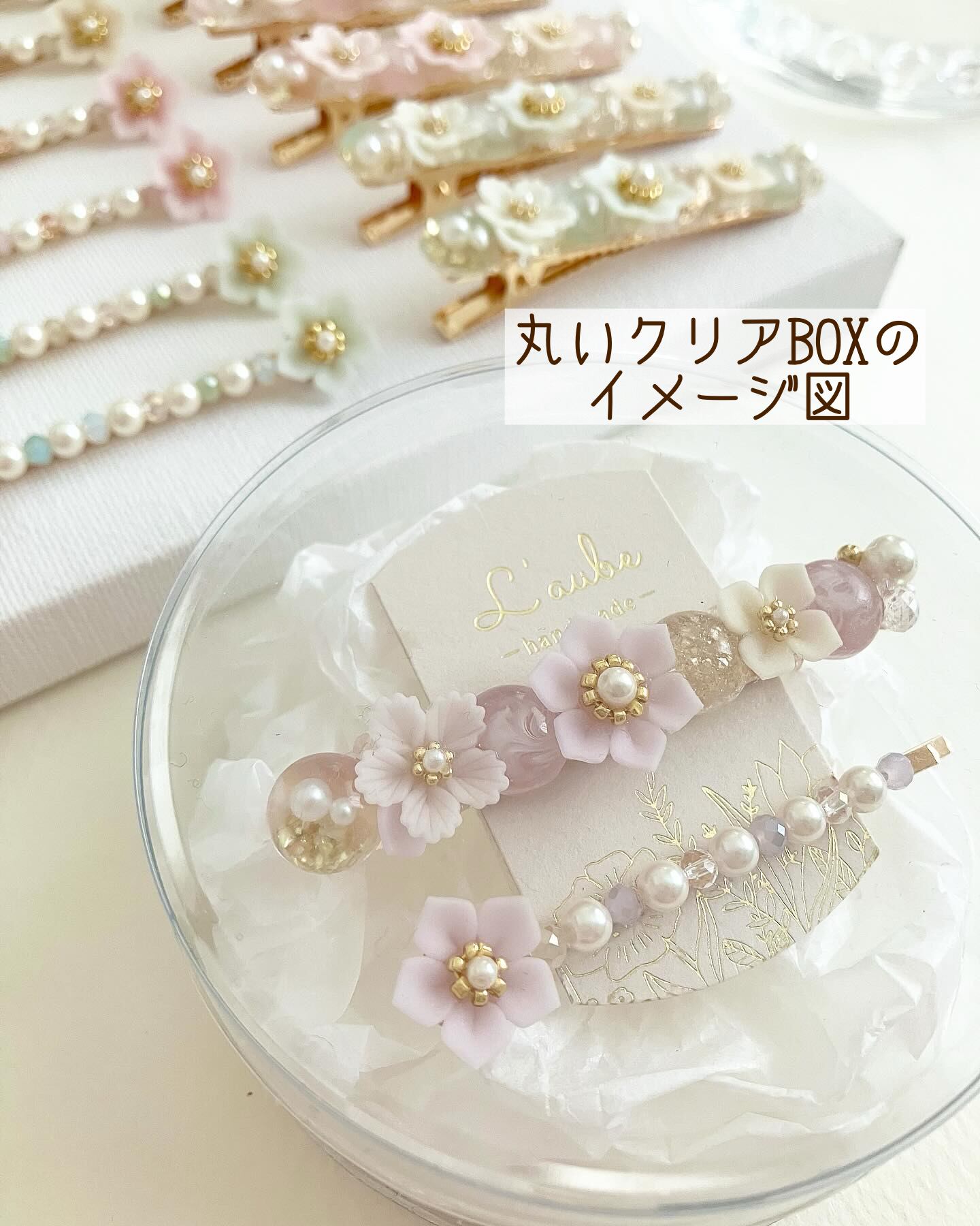 ※L'aubeフラワーは花びら1枚ずつすべて手作業です。