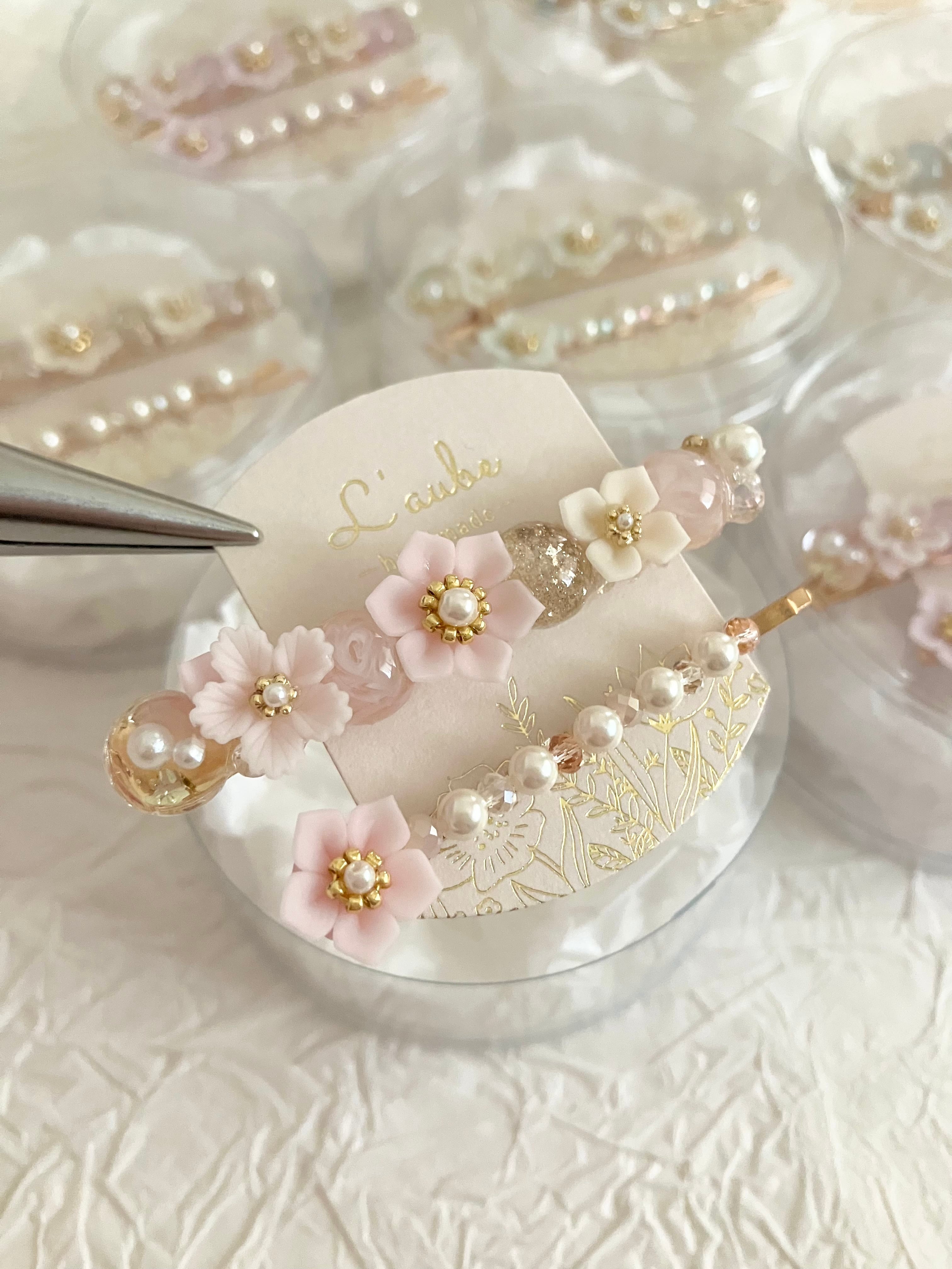 ※L'aubeフラワーは花びら1枚ずつすべて手作業です。