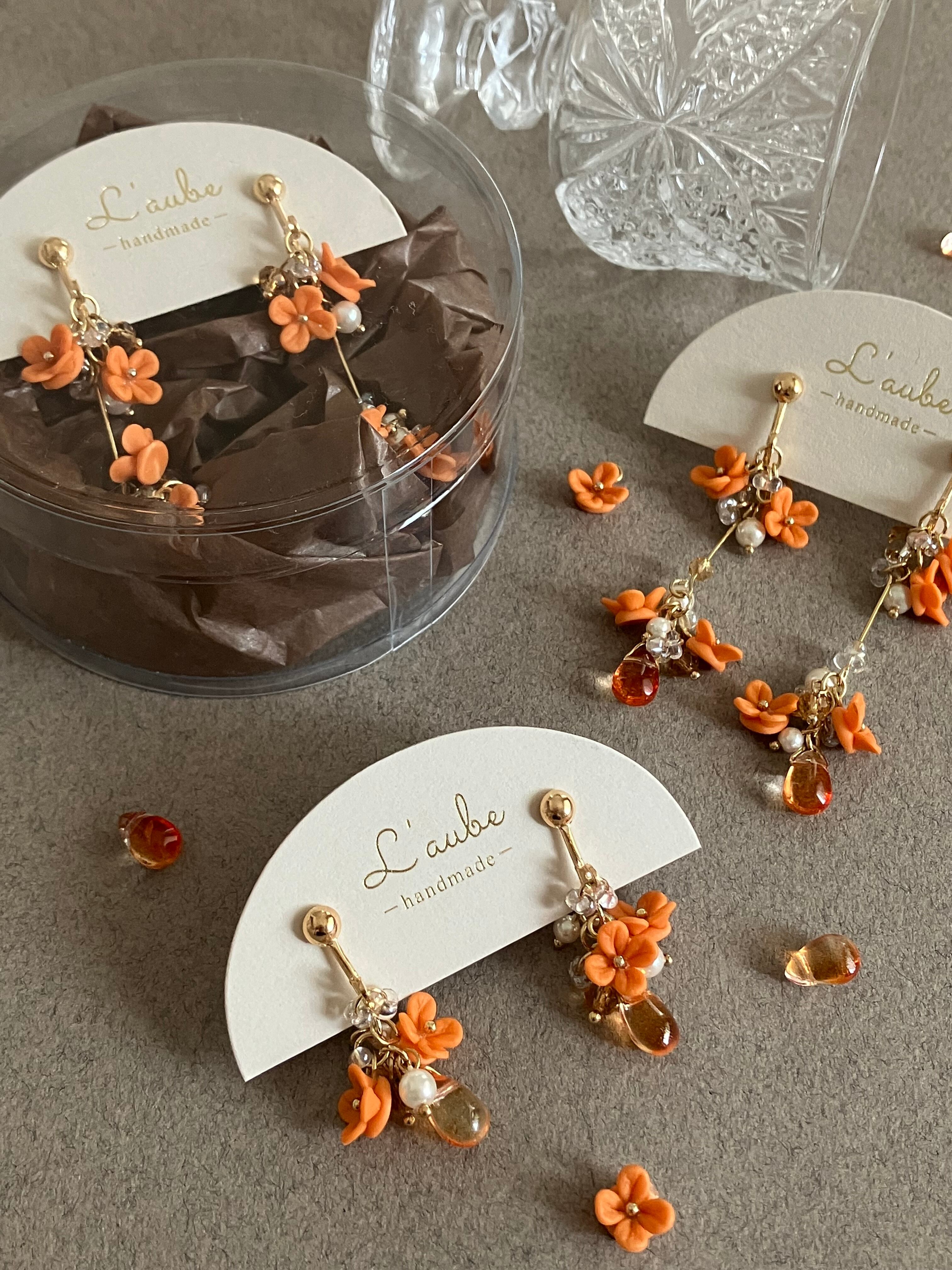数種類のビーズも揺れるたびにキラキラと優しく輝いてくれるアクセサリー。