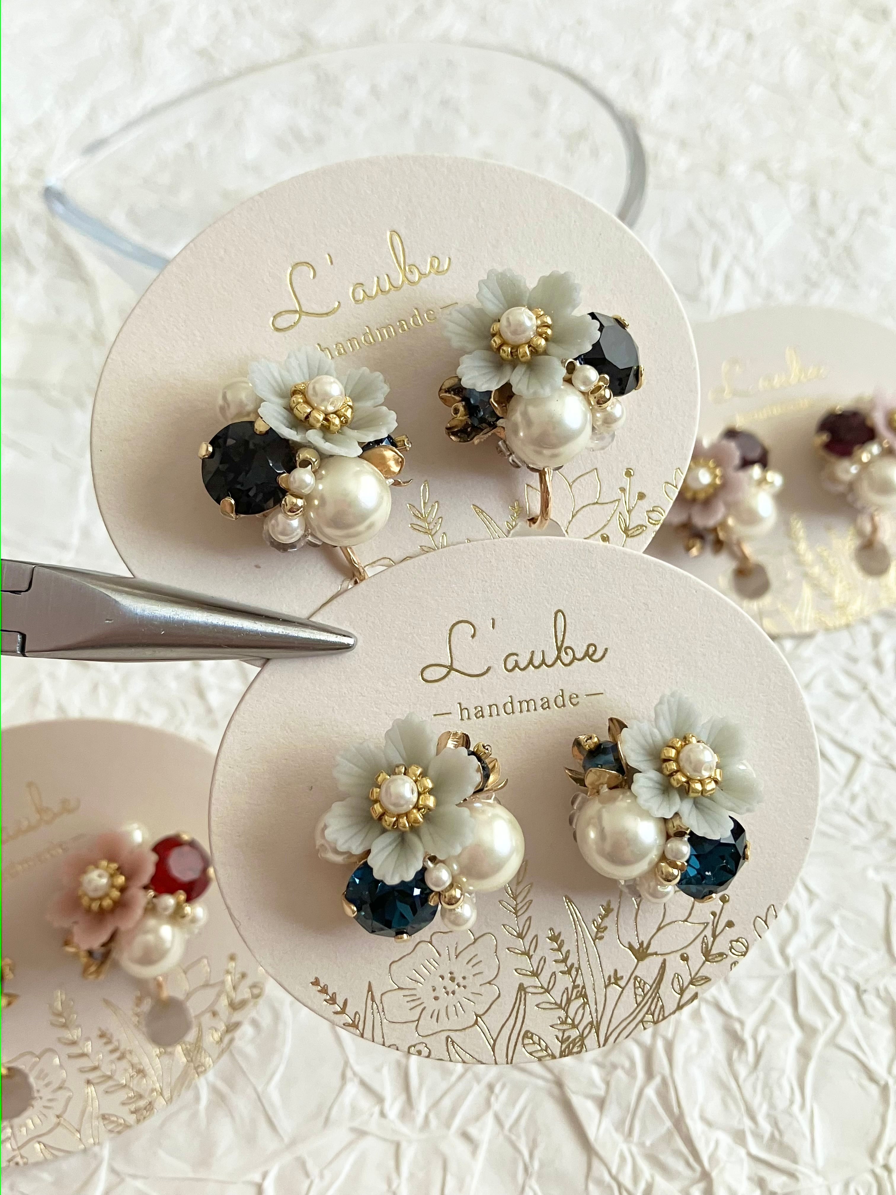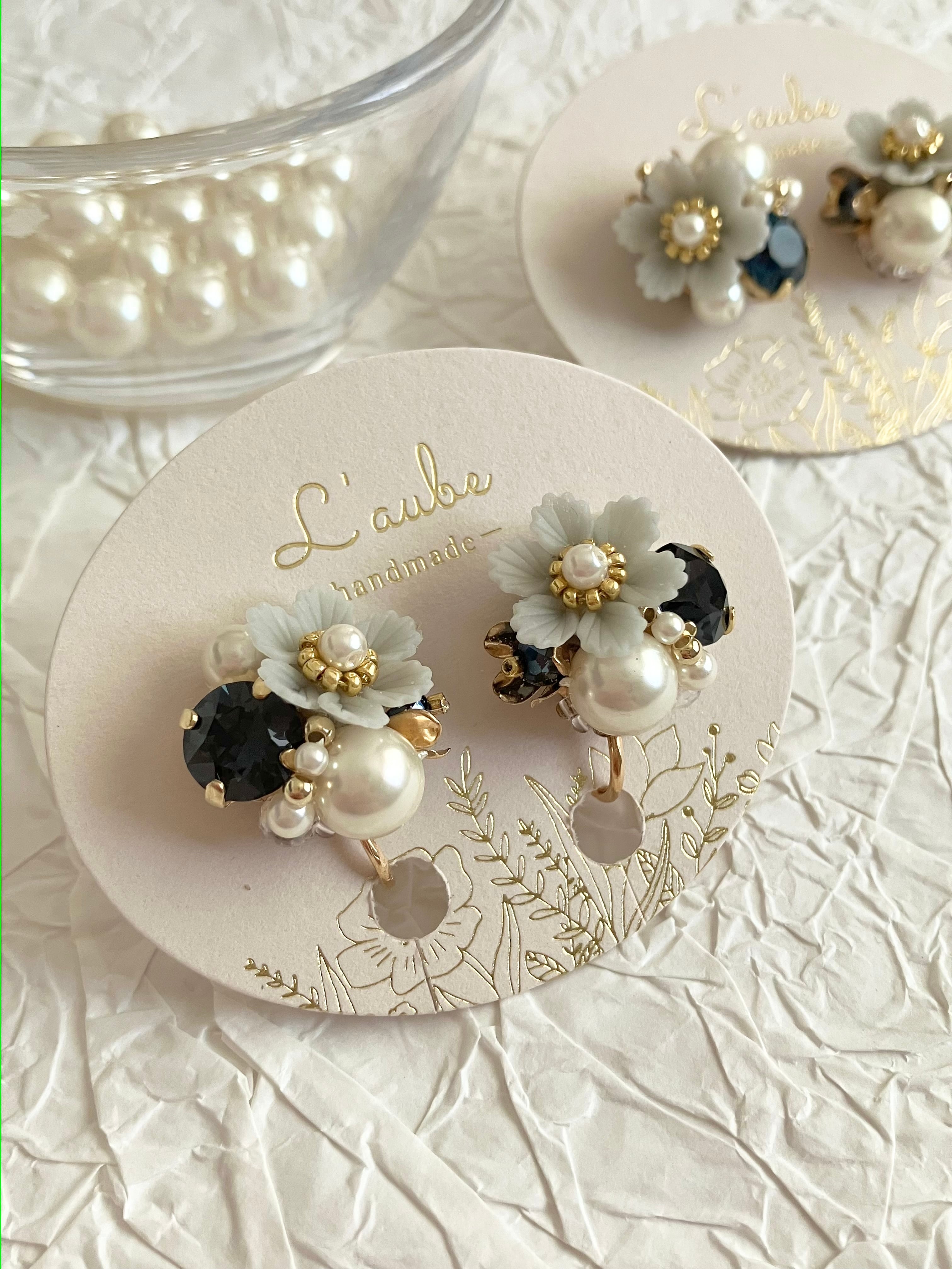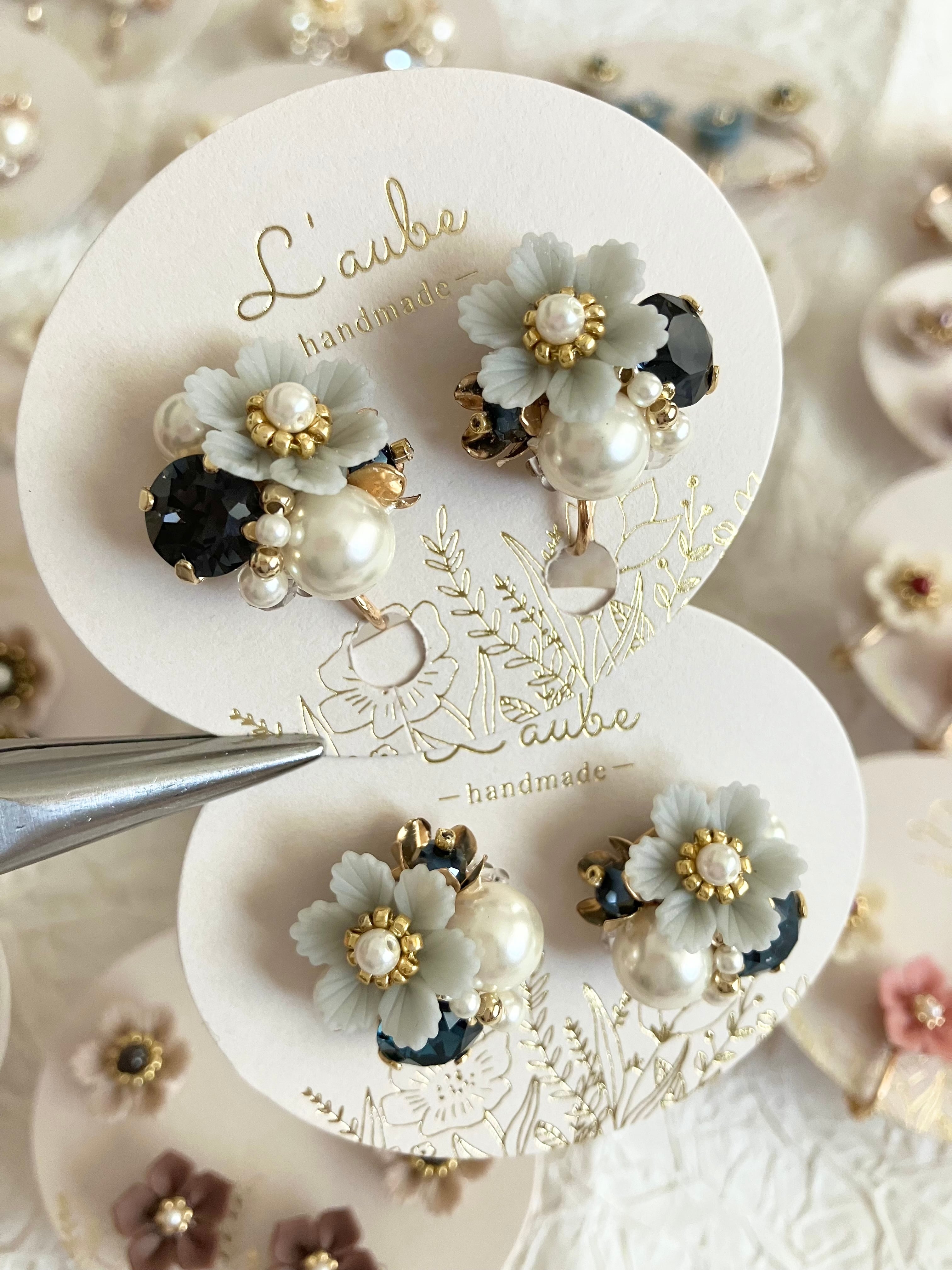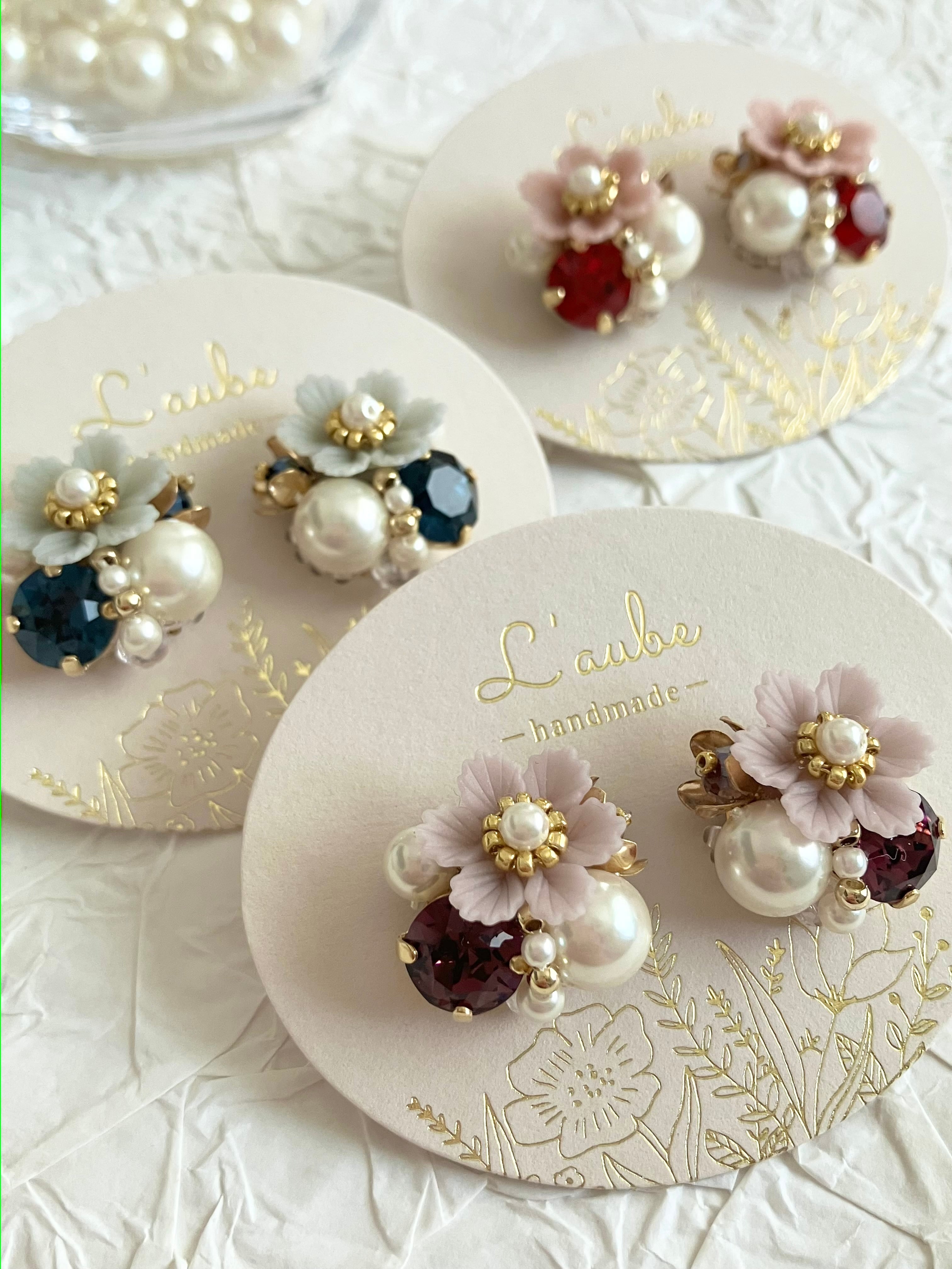 bijou flower(くすみブルー)♡イヤリング/ピアス