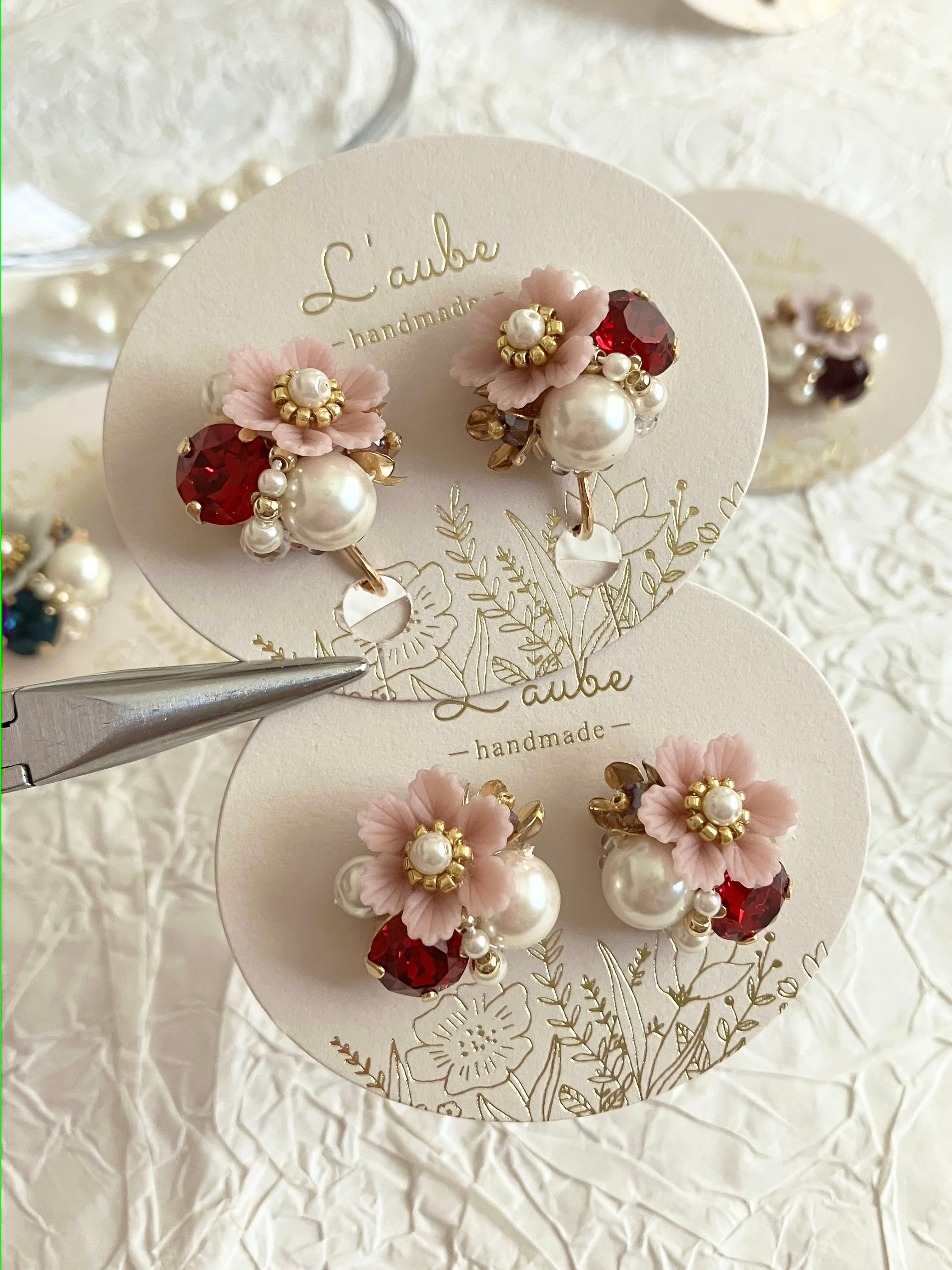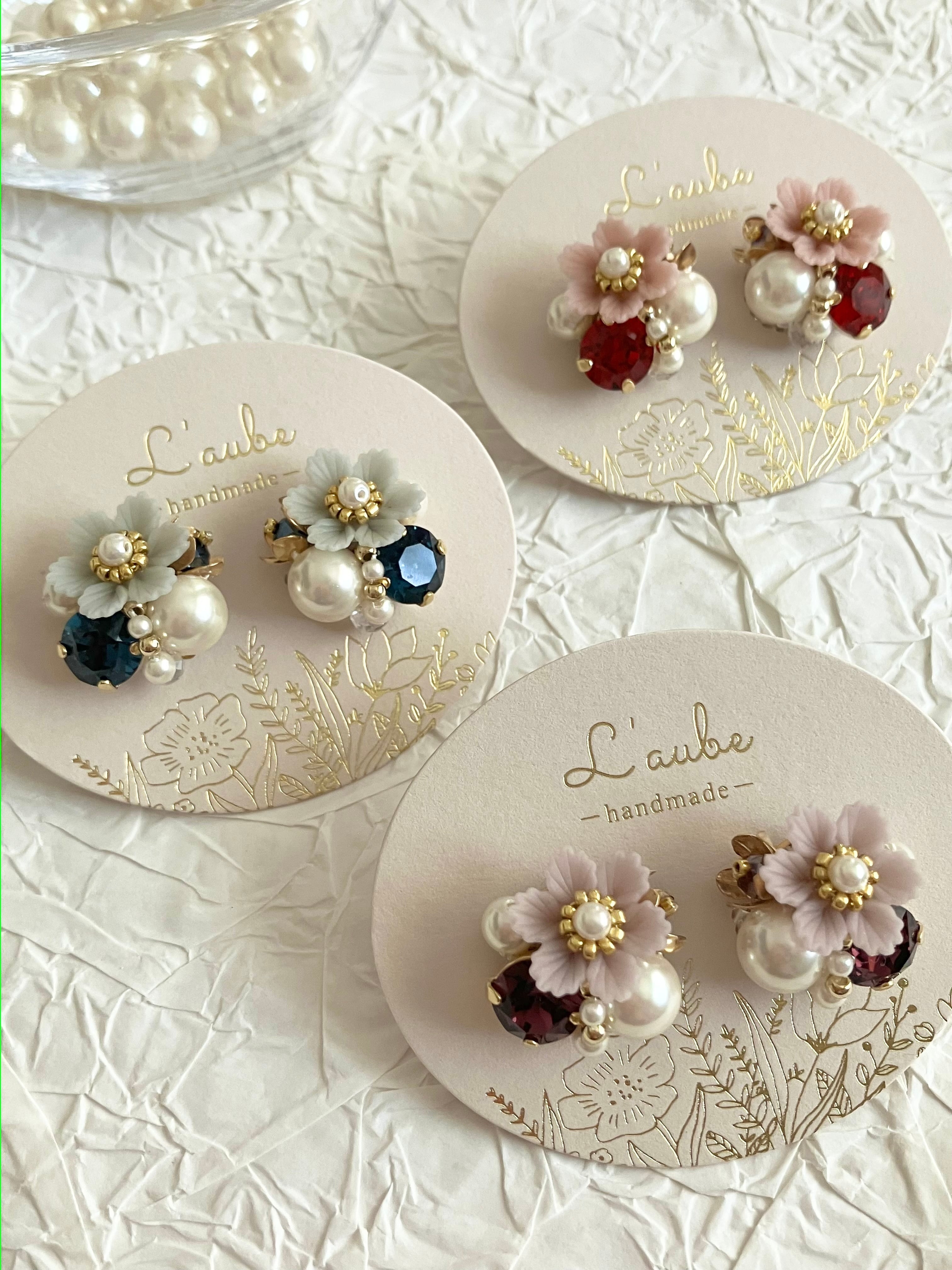 bijou flower(くすみピンク)♡イヤリング/ピアス