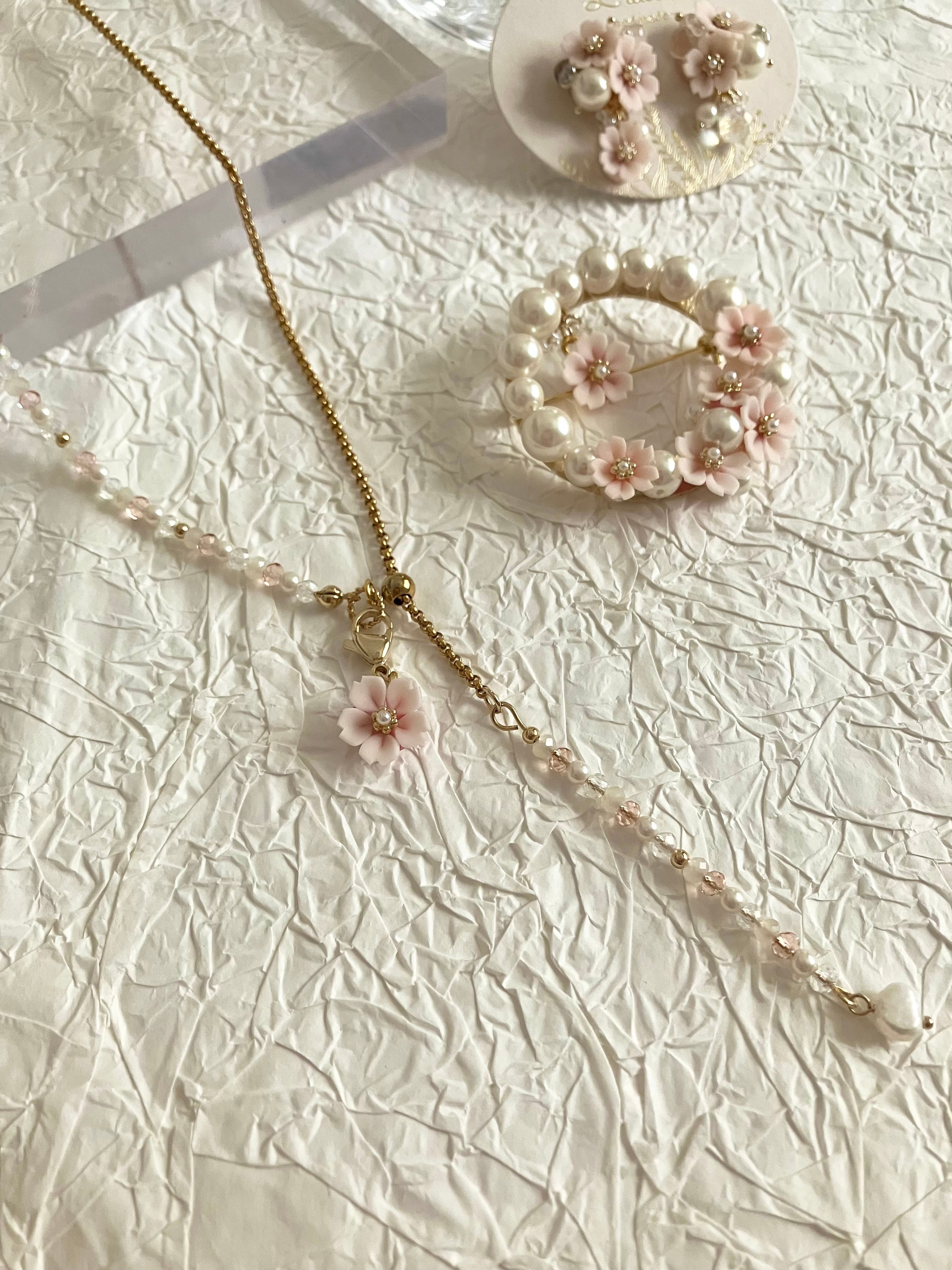 桜のエレガントなロングネックレス