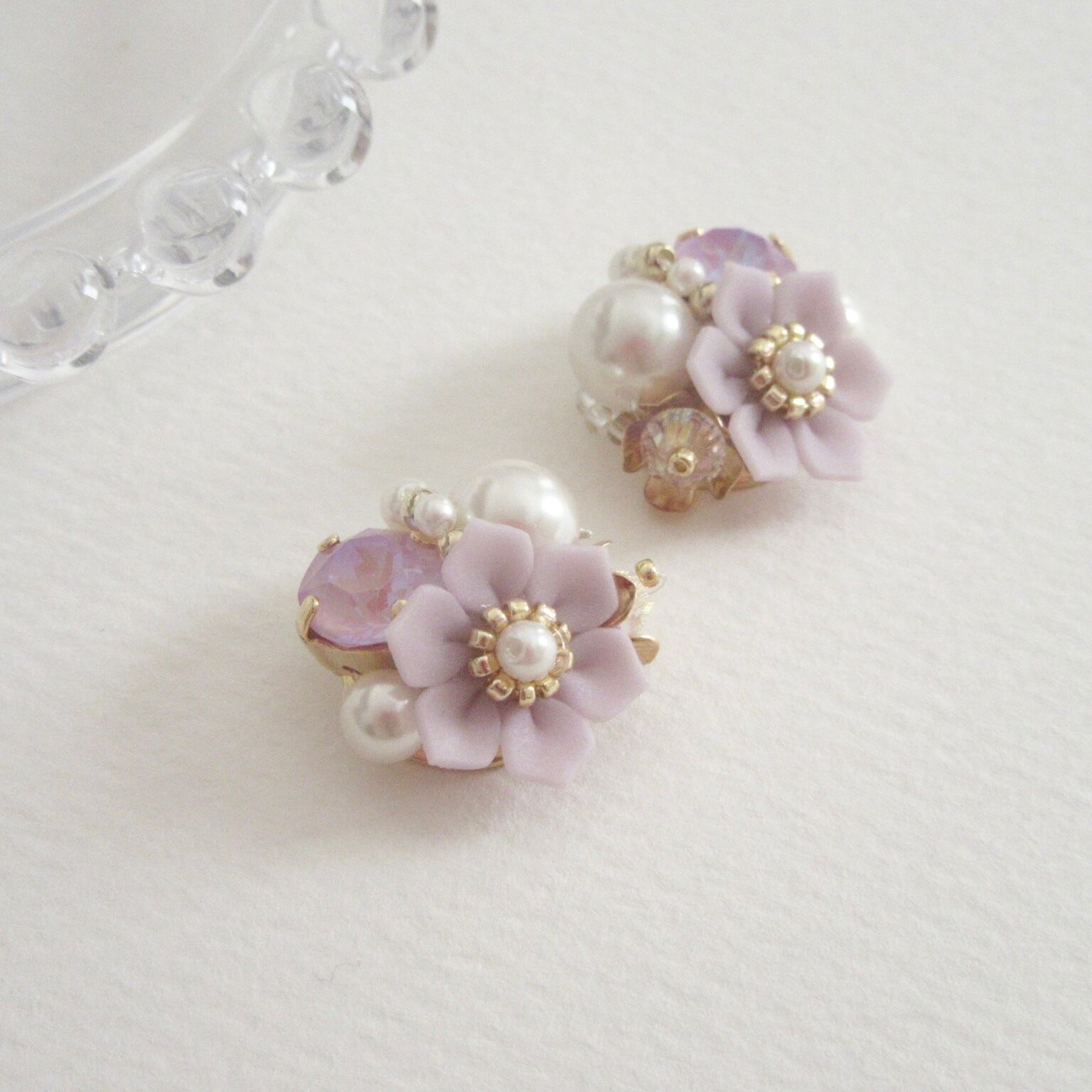 bijou flower(ラベンダー)♡イヤリング/ピアス