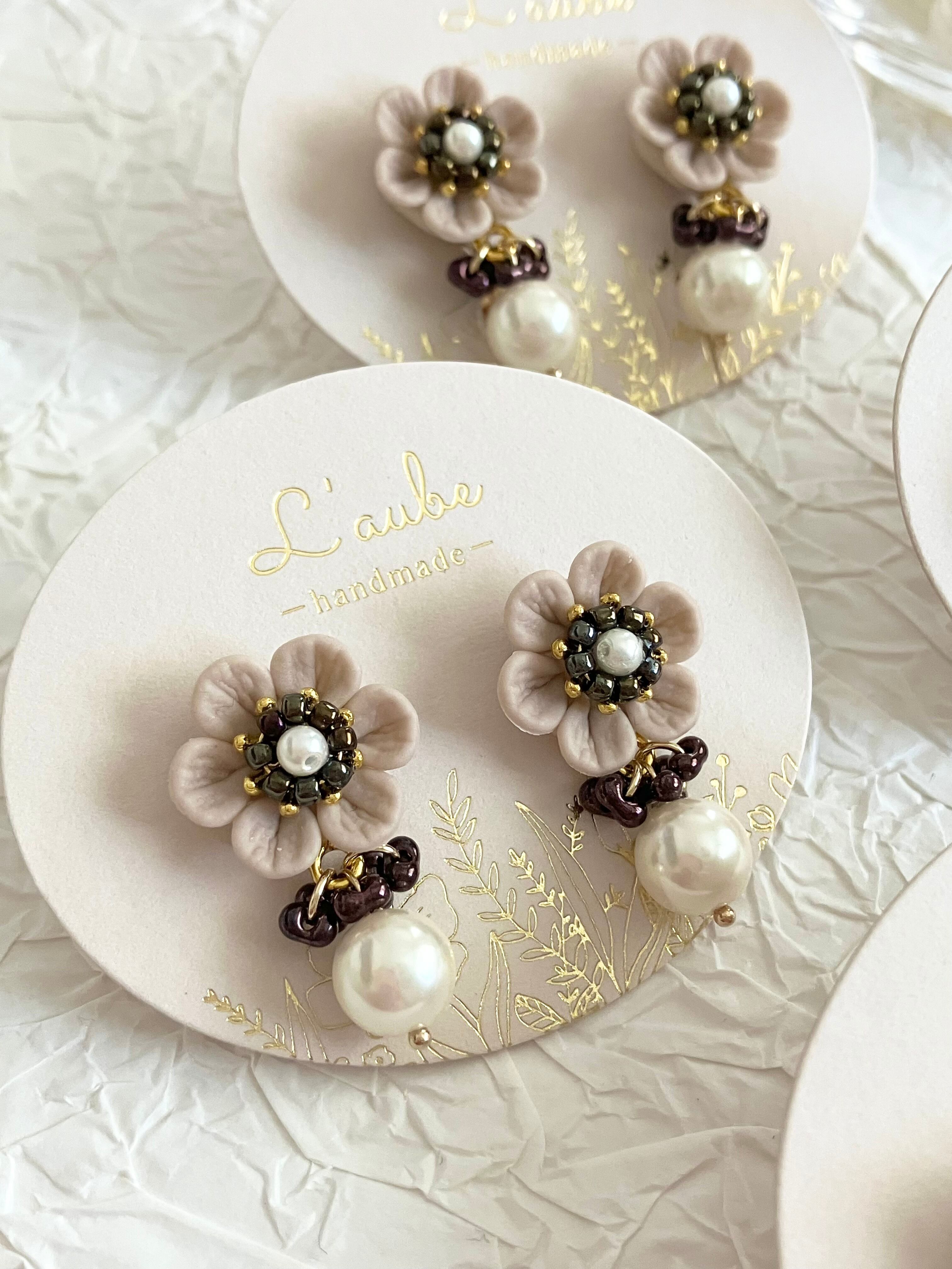 アネモネ(ベージュ)ピアス/イヤリング